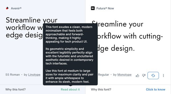 明晰细目:为字体推选提供语义化的适配解读,援手即时预览,让团队清醒字体适配逻辑,作念出更细认识创意决议