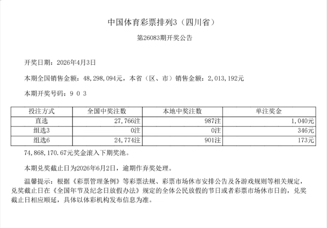 快乐飞艇下载 中国体育彩票4月3日开奖效果