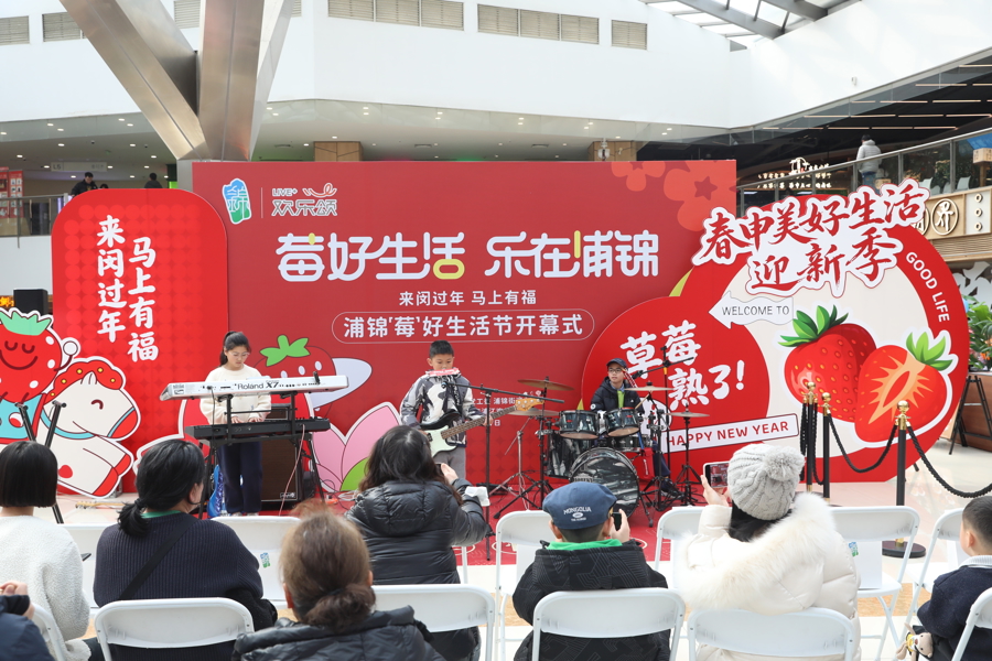 2月7日下昼,闵行浦江欢笑颂市集4楼东谈主头攒动,空气中足够着草莓的清甜香气。伴跟着萌娃电子乐队轻快的演奏声,“来闵过年 迅速有福”浦锦“莓”好生计节开幕,也为“春申好意思好生计迎新季——‘莓’好生计 乐在浦锦”主题行径拉开了序幕。本次行径将捏续至2月8日,浦锦街谈以特点草莓为媒,串联起文旅商体展多元体验,为市民带来一场别具特点的新春阔绰盛宴。