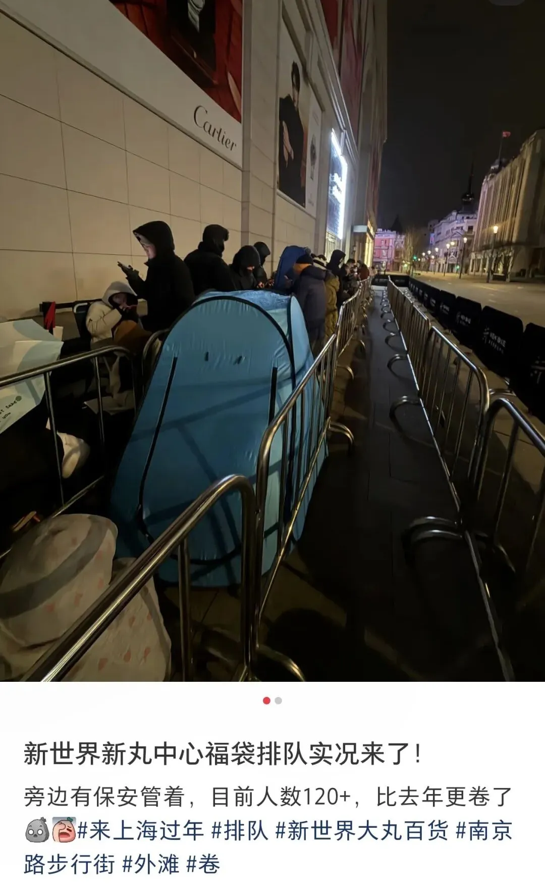 在冷到呱呱抖的天气里昨天夜里南京路上却出现彻夜列队的时势!深夜的气温依然到零下了他们都在排啥?⬇️底本他们都是为了一年一度的新寰宇新丸中心新春福袋而来!不少网友共享了彻夜列队盛况