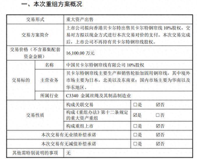 值得戒备的是,本次交游并不附带任何事迹欢喜及事迹抵偿要求。交游完成后,法尔胜将不再合手有这家曾被视为“现款奶牛”的联合钢帘线企业任何股权,后者将由贝卡尔特集团全资控股。