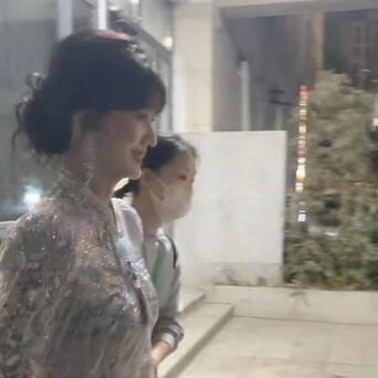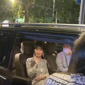 她晚上10点多了才出来,走路得有东说念主搀扶,胳背看着不是很烦躁,她伸手跟路东说念主打呼叫,手背青筋爆出。