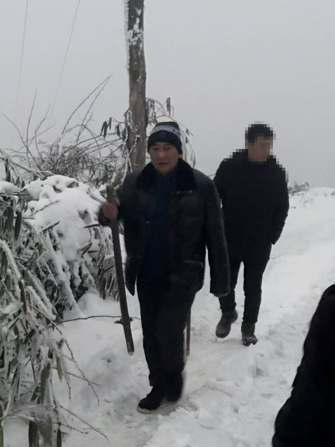 王宇飞(左)带队爬上雪山撤消制毒窝点