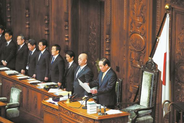 日本众议长额贺福志郎晓喻驱散众议院 新华社 发
